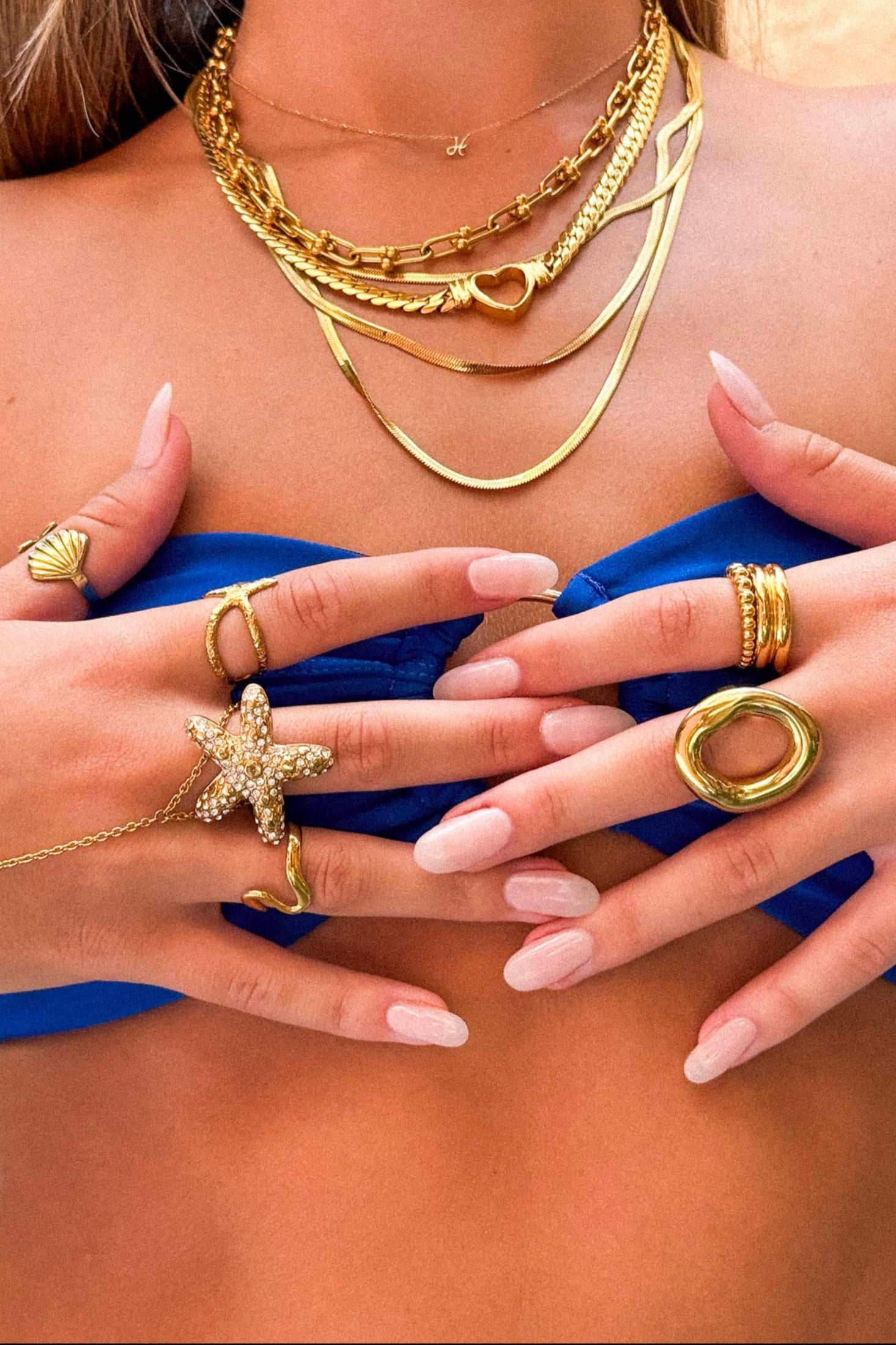Rings are an easy way to bring a touch of elegance to your hands. Explore our beautiful ring collection, from minimalistic bands to more intricate designs. Each one is made to complement your individual style and add a sophisticated touch to any outfit.